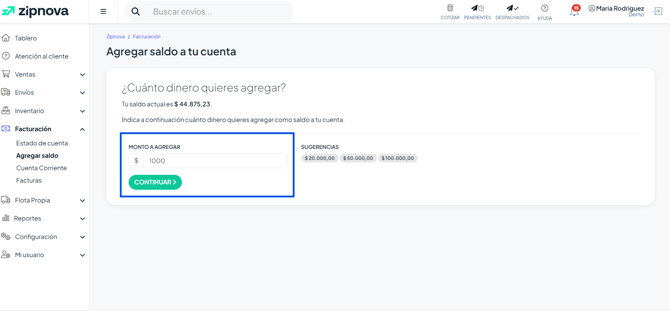 A continuación, se agrega el monto deseado y se da clic en “Continuar”.