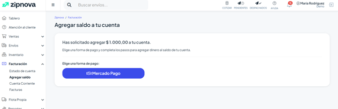 En la sección Facturación, se encuentra el botón "Agregar Saldo".