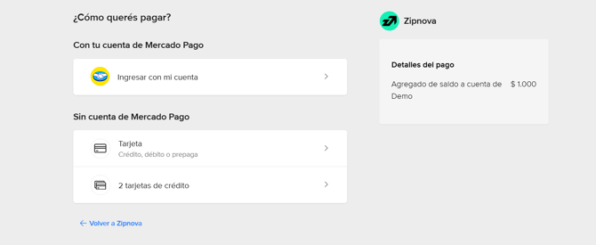 Luego se selecciona el método transferencia o Mercado Pago (dentro de esta sección podrás agregar saldo mediante cuenta de Mercado Pago , con tarjeta de débito o crédito).