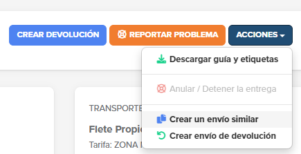 Esto abrirá la sección de cotización y creación del nuevo envío, ya pre-cargado con la información del envío original.