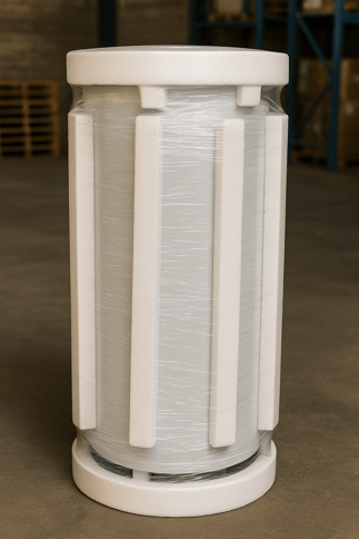 Proteger la estructura expuesta con aro de cartón grueso o barras de telgopor/plumavit, asegurando con mínimo tres vueltas de film.